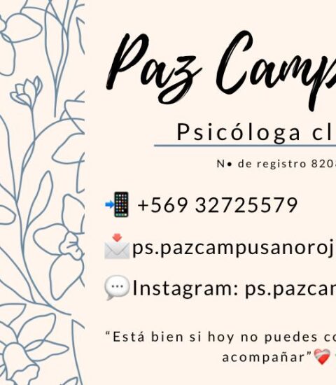Mi nombre es Paz Campusano Rojas, soy psicóloga clínica y ofrezco mis servicios de psicoterapia online y a domicilio en La Serena y Ovalle.